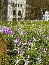 Krokusen setter farge på gressplenen utenfor Universitetsmuseet.