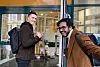 Martin Magnussen og Benjamin Aniket Stenerud, masterstudenter i medier og kommunikasjon, var storfornøyd med å endeleg koma tilbake på campus då det vart opna opp igjen måndag 22.februar. Her utanfor SV-fakultetet.