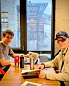 Studentane er tilbake til campus. Her er det to studentar som har funne vegen til den nyoppussa SV-kantina ved UiB.